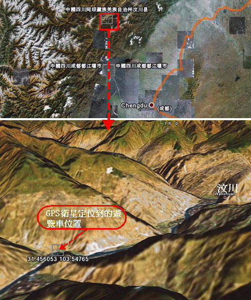 中新網(wǎng)5月16日電 四川地震后,臺灣彰化祥鶴旅行社一行14人行蹤成謎。據(jù)臺灣《聯(lián)合晚報(bào)》報(bào)道,透過團(tuán)員搭乘的游覽車上的GPS定位系統(tǒng),確定了游覽車的經(jīng)緯度,在汶川鐵礦附近。目前人在四川的旅行社總經(jīng)理陳文義已將定位的位置交給當(dāng)?shù)氐木葹?zāi)指揮中心,希望能夠優(yōu)先搶救,盡速把年事已高的團(tuán)員們找到。
