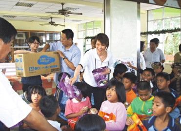“這是給你的,要好好珍惜喲!”泰武小學(xué)學(xué)生從周美青手中,接獲她贈送每人一個絨毛小熊及餅干時,個個笑得合不攏嘴。