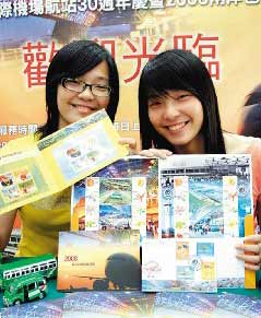 桃園郵局為了迎接兩岸包機直航,加上桃園國際機場航空站30周年慶,明天起將推出限量5000套直航個人化郵票,每套售價新臺幣300元,為了配合不同的主題,因此明天所蓋紀(jì)念郵戳為“桃園國際機場航空站30周年”,7月4日當(dāng)天所蓋紀(jì)念郵戳則是“2008兩岸周末客運包機首航志慶”。