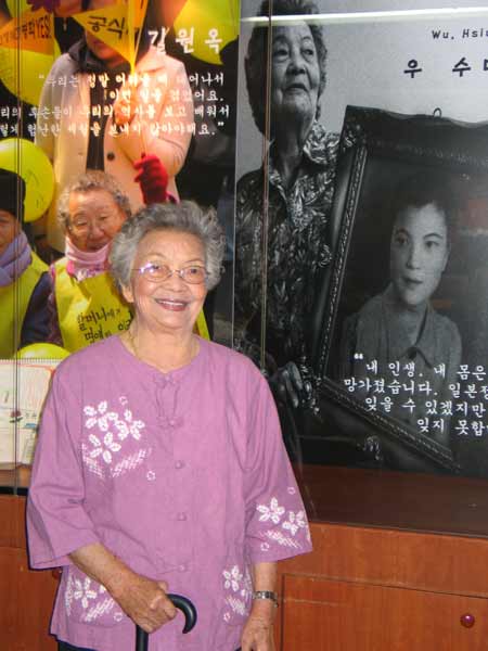 中新網(wǎng)7月16日電 曾被日本強(qiáng)迫征調(diào)為日軍慰安婦的臺(tái)灣阿嬤吳秀妹,今天由臺(tái)灣“婦女救援社會(huì)福利事業(yè)基金會(huì)”董事長(zhǎng)葉毓蘭及董事陳淑麗等陪同,冒著大雨在首爾市日本大使館前高唱“雨夜花”,抗議日本軍國(guó)主義摧殘她的青春,并要求日本政府公開(kāi)道歉及給予賠償。