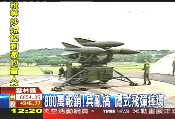 中新網(wǎng)9月8日電 臺(tái)灣云林防空導(dǎo)彈部隊(duì)爆發(fā)烏龍事件,一名士官帶兵保養(yǎng)鷹式導(dǎo)彈時(shí)失誤,導(dǎo)致一枚造價(jià)800萬新臺(tái)幣的導(dǎo)彈當(dāng)場(chǎng)滑落地面,幸好沒有爆炸,但導(dǎo)彈已經(jīng)報(bào)廢而無法使用。