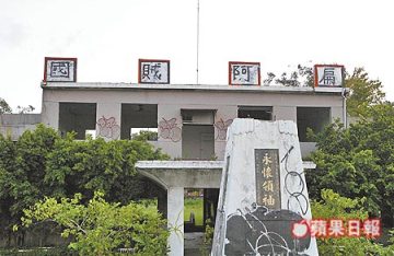 臺軍位于臺北的一處廢棄營區(qū)指揮部大樓上標語牌,遭人以油漆寫上“‘國賊’阿扁”。 (圖:臺灣《蘋果日報》)