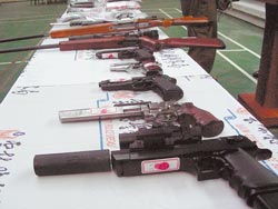中新網(wǎng)10月21日電 據(jù)臺(tái)灣媒體報(bào)道,臺(tái)灣黑幫傳出透過(guò)網(wǎng)絡(luò)營(yíng)銷(xiāo)的改造CO2空氣手槍?zhuān)坏邭,遇警一摔地,馬上破壞氣道,讓警方無(wú)法鑒驗(yàn)出殺傷力,成為黑幫分子的最?lèi)?ài)。警方跟監(jiān)兩個(gè)多月后,昨天逮捕六名制槍嫌犯,起出十把改造槍支等彈械。
