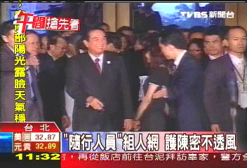 報道稱,陳云林此次赴臺,除了臺灣出動大批警力保護(hù)外,陳云林也帶著貼身隨行人員。依據(jù)對等原則,臺灣方面同意陳云林隨行人員隨團(tuán)。