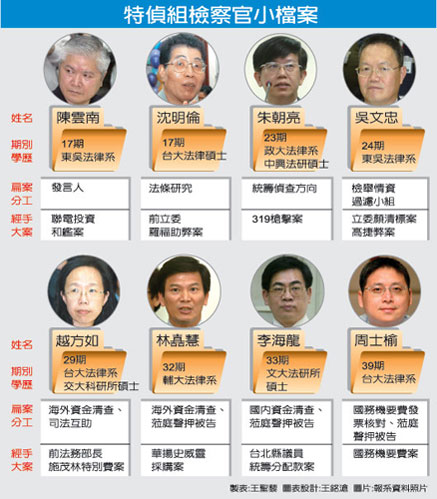 朱朝亮是島內(nèi)司法官23期大學(xué)長,心軟,在特偵組中屬于老大哥級人物,他擔(dān)任過臺南、云林地檢署檢察長;吳文忠,24期,是前查緝黑金中心檢察官,作風(fēng)大膽潑辣,發(fā)言犀利,兩人都分配在第2工作組,;ハ鄥f(xié)辦案件,個性表現(xiàn)則一慍一火。