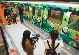 趁著熊貓熱,臺北市觀光傳播局也特別打造“捷運熊貓列車”,每節(jié)車廂外有臺灣黑熊、長鬃山羊、梅花鹿等十二種保育類動物,以及六只可愛熊貓圖案,預計將行駛至明年三月二十五日。