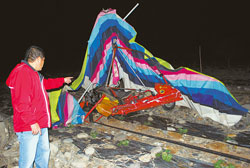 中新網(wǎng)1月4日電 據(jù)臺(tái)灣《中國時(shí)報(bào)》報(bào)道,臺(tái)灣屏東高樹鄉(xiāng)南華輕航機(jī)飛行場(chǎng)常吸引包括綜藝大哥大張菲在內(nèi)的許多飛行玩家。3日下午就在張菲離開現(xiàn)場(chǎng)不久發(fā)生嚴(yán)重意外事故。來自高雄的胡政忠、吳秋美同乘一架動(dòng)力推進(jìn)的三角翼滑翔翼,疑遇到亂流或機(jī)械故障,整架滑翔翼從空中像倒栽蔥一樣摔落南瓜園中,兩人送醫(yī)均不治。
