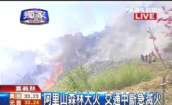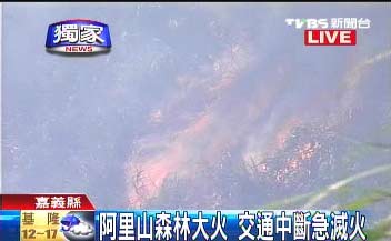 嘉義林區(qū)管理處大埔事業(yè)區(qū)228林班地,也就是在阿里山公路69公里處的邊坡草生林地,今天凌晨1時(shí)左右突然起火燃燒,火舌濃煙沖天。