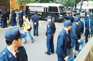 警察不敢掉以輕心,一字排開并分持盾牌、警棍將臺(tái)北地院四周團(tuán)團(tuán)圍起,進(jìn)行管制,還有便衣刑警錄像搜證。特勤維安人員除穿插在警方陣勢中,法庭內(nèi)外更是到處可見。