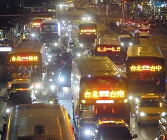 中新網(wǎng)1月24日電 據(jù)臺(tái)灣《聯(lián)合報(bào)》報(bào)道,春節(jié)假期將屆,臺(tái)北市主要干道紛紛涌現(xiàn)大批返鄉(xiāng)車(chē)潮,尤其是臺(tái)北車(chē)站、客運(yùn)總站、年貨大街周邊區(qū)域車(chē)流多又慢,幾乎已成大型汽車(chē)停車(chē)場(chǎng)。