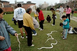 中新網(wǎng)2月8日電 據(jù)臺(tái)灣《中國(guó)時(shí)報(bào)》報(bào)道,到公園遛狗、遛鳥、遛迷你豬之外,新竹縣一公園草地上,7日出現(xiàn)7條白蛇集體出游,引起不少散步民眾驚聲尖叫,“哇,怎么會(huì)有這么多蛇啊,好可怕!”也有人覺得十分新奇有趣,原來(lái)是一名愛蛇成癡的男子在遛蛇。