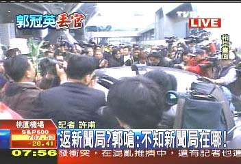 發(fā)表“辱臺”爭議言論的臺當(dāng)局前“新聞局”派駐加拿大多倫多官員郭冠英,31日上午6時多抵達桃園機場,出關(guān)時有二三十名黑衣男子包圍他要護送他離開,但也有綠營在現(xiàn)場嗆聲,要求道歉。
