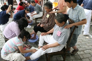 “看到媽媽的腳歷盡風(fēng)霜長了繭,因日曬留下雙色的印記,內(nèi)心真是百感交集,頓時(shí)體悟到必須更貼心、用心地孝敬媽媽。”一名江姓小姐在為媽媽浴足后道出心中的感動(dòng),F(xiàn)場(chǎng)不少媽媽及子女在浴足的過程都滿懷感動(dòng),有人眼眶泛紅遲遲難以言語,有人不禁流下激動(dòng)的淚水,讓旁人也強(qiáng)烈感受濃濃的孝親之情。