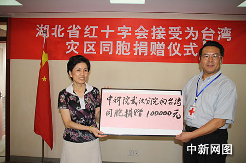 除上述100萬(wàn)元人民幣的捐款外,連日來,已陸續(xù)有武漢市民在湖北省紅十字會(huì)登記捐贈(zèng)。8月19日下午,湖北省紅十字會(huì)機(jī)關(guān)也開展了募捐活動(dòng),湖北省紅十字會(huì)專職副會(huì)長(zhǎng)毛三元帶頭捐款500元人民幣。中國(guó)科學(xué)院武漢分院黨組書記、常務(wù)副院長(zhǎng)陳平平專程趕到湖北省紅十字會(huì),代表該院向臺(tái)灣同胞捐贈(zèng)10萬(wàn)元人民幣。