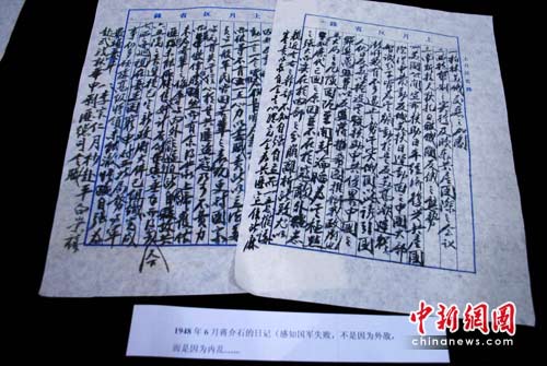 中新網(wǎng)重慶5月11日電 (孟幻)11日,紅巖革命歷史博物館展示了其從美國(guó)抄回的蔣介石日記。據(jù)稱(chēng),這些日記為首次在大陸曝光,將有利于近代史實(shí)的完善和補(bǔ)充。