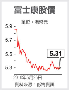 據(jù)臺(tái)灣《中國(guó)時(shí)報(bào)》報(bào)道,富士康昨日股價(jià)重挫近一成,終場(chǎng)下跌0.57港元、收5.31港元,跌幅達(dá)9.69%。