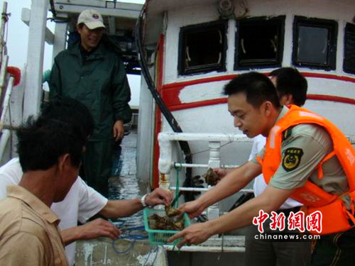 中新網(wǎng)惠安6月15日電 (林永傳 郭斌 陳群峰)“嗯……好吃,跟臺(tái)灣的口味差不多,謝謝你們邊防民警……”15日,福建崇武邊防派出所官兵為來(lái)轄區(qū)港口靠岸避風(fēng)雨的19名臺(tái)胞送上了“閩南肉粽”,受到了臺(tái)胞的熱烈歡迎。