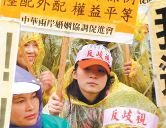 中新網3月23日電 臺灣《聯合報》今日發(fā)表文章說,兩岸婚姻已一、二十年,許多大陸配偶已成臺灣新住民,他們的下一代變成新臺灣之子,但“兩岸人民關系條例”遲未修正,部分歧視性的條文,讓二十九萬大陸配偶飽嘗挫折,當初她們懷著新婚的喜悅與家人的祝福踏上寶島,但才發(fā)現臺灣是個不友善的地方。