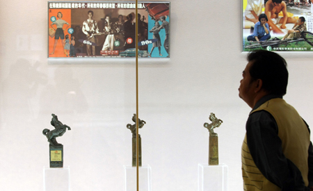 臺(tái)北金馬影展“向大師致敬”文物展二十五日開幕,展出電影大師胡金銓、李翰祥、楊德昌等人生前手稿、劇本、劇照等文物!爸醒肷纭眻D 鄭杰文 攝