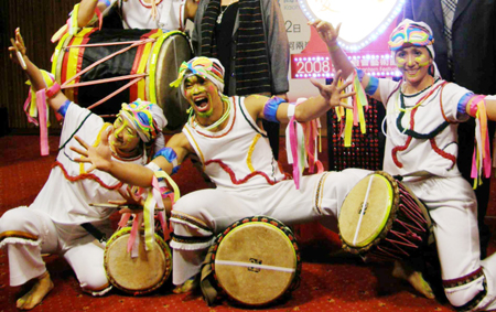 2008高雄燈會藝術(shù)節(jié)即將登場,表演團(tuán)體十八日先演出精彩片段,令人驚艷!爸醒肷纭眻D 陳朝福 攝