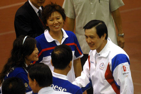 馬英九30日南下高雄左營選手訓練中心,慰勉北京奧運參賽受訓選手、教練,預祝行程順利、奪標成功。據(jù)悉,臺灣將派出80余名選手參加北京奧運的15項運動,第一批選手預定8月3日出發(fā)!爸醒肷纭眻D