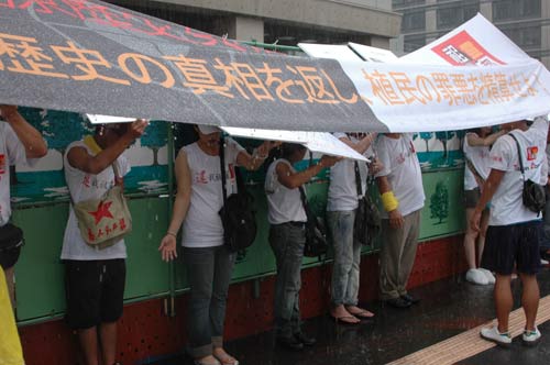 據(jù)臺(tái)灣《聯(lián)合報(bào)》報(bào)道,一行50多人于中午時(shí)分前往日本國(guó)會(huì)議事堂旁邊的參議員會(huì)館前,高舉控訴日本殖民時(shí)期迫害臺(tái)灣少數(shù)民族的巨大布條及歷史照片,高喊“拒絕參拜”、“還我祖靈”、“日本反省、謝罪和賠償”等口號(hào),表達(dá)他們對(duì)日本的抗議。