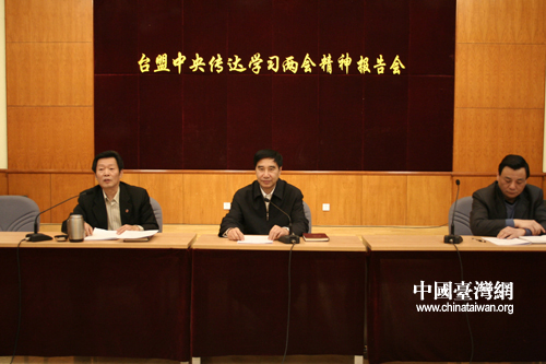 3月24日上午,臺(tái)盟中央在京召開(kāi)會(huì)議,傳達(dá)2010年全國(guó)“兩會(huì)”精神。全國(guó)政協(xié)常委、臺(tái)盟中央副主席黃志賢主持會(huì)議。