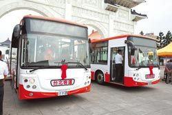 中新網(wǎng)2月26日電 據(jù)“中央社”報(bào)道,在臺(tái)北縣府補(bǔ)助下,臺(tái)北客運(yùn)已引進(jìn)油電混合動(dòng)力公交車,臺(tái)北縣長(zhǎng)周錫瑋及臺(tái)北客運(yùn)董事長(zhǎng)李博文等人25日剪彩,首批15輛公交車上路,往返板橋與新莊的“99線”路線。