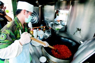 中新網(wǎng)8月4日電 據(jù)臺(tái)灣《聯(lián)合晚報(bào)》報(bào)道,臺(tái)當(dāng)局“國(guó)防部”4日上午向媒體公開(kāi)臺(tái)軍自行研發(fā)的野戰(zhàn)炊事車(chē),每輛野戰(zhàn)炊事車(chē)配備四名食勤人員,在兩小時(shí)內(nèi)可以提供300位士兵熱食。這輛炊事車(chē)每輛造價(jià)400萬(wàn)元,未來(lái)配發(fā)部隊(duì)后,當(dāng)部隊(duì)野外演習(xí)時(shí),可以有機(jī)會(huì)馬上吃到熱食,而不是后面送來(lái)的冷便當(dāng)。