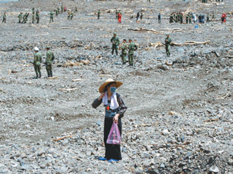 據(jù)臺灣《聯(lián)合報》報道,“黑衣部隊”的9名官兵10日即進駐那瑪夏鄉(xiāng)救災(zāi),近日更深入災(zāi)情嚴重的民族村搜尋罹難者,由于道路中斷、挖土機無法挺進,所有開挖全賴徒手完成。9名官兵前天起天亮即進村,在烈日及大雨交織的天氣下,協(xié)助開挖罹難者。
