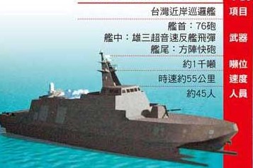 對于研發(fā)新型近岸巡邏艦,海軍司令部表示,海軍希望建立“不對稱戰(zhàn)力”,因此一直朝小而精、小而巧、小而強(qiáng)的方式,籌建現(xiàn)代化防務(wù)武力,以滿足臺澎防衛(wèi)作戰(zhàn)的需求。