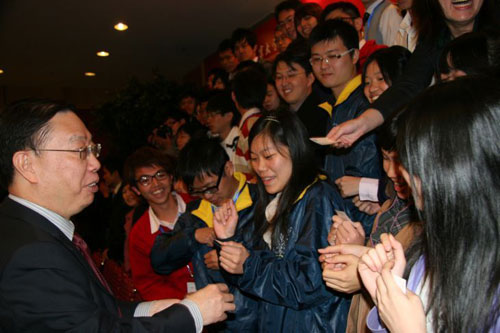 他表示,青年學(xué)生是社會的未來,希望兩岸學(xué)生從民族尊嚴(yán)和振興中華的角度,實(shí)踐和推動兩岸的和平發(fā)展,同時鼓勵臺灣醫(yī)學(xué)生到基層實(shí)習(xí)、鍛煉,培養(yǎng)良好的職業(yè)道德。會見結(jié)束后,黃潔夫與臺灣醫(yī)學(xué)生們合影留念。