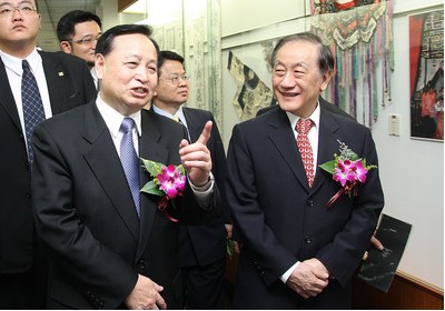 湖北省省委書記羅清泉、新黨主席郁慕明、前;鶗倍麻L焦仁和、大陸當代畫家周韶華和臺灣藝術(shù)家李奇茂等,21日上午皆出席“2010臺灣湖北 (武漢)周─荊楚文化聯(lián)展”開幕式典禮。