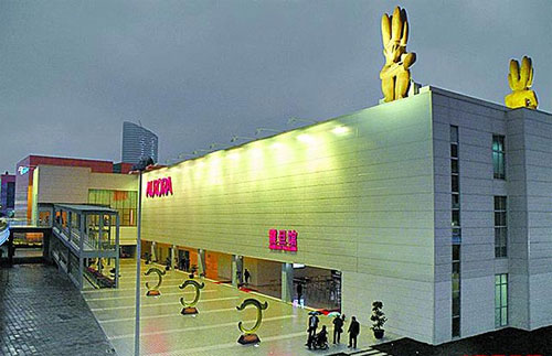 震旦館副館長譚白絹說,館外屋頂有兩座6公尺高的紅山玉人雕塑,是紅山時期的玉神獸,頭上四角及兩耳彷佛太陽光芒“守護”世博會和來訪民眾。