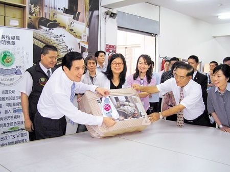 昨天上午,馬英九在“陸委會(huì)”主委賴幸媛的陪同下,到臺(tái)南市安平工業(yè)區(qū)參觀傳統(tǒng)產(chǎn)業(yè)億進(jìn)寢具公司,馬英九、賴幸媛等官員參觀寢具的制造過程中,馬英九還親自踩縫紉機(jī)、燙棉被,感受傳產(chǎn)勞工的辛苦后,隨即和來自各縣市的四十五位傳統(tǒng)業(yè)者代表座談。