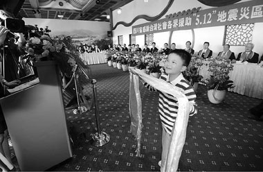 5月24日下午,一次特別的聚會——四川省感謝臺灣社會各界援助“5·12”地震災(zāi)區(qū)見面會在臺北圓山飯店昆侖廳舉行。曾經(jīng)深入“5·12”汶川特大地震災(zāi)區(qū)的臺灣救援隊、醫(yī)療隊、志愿者、援建單位和文娛界以及媒體代表歡聚一堂,回憶和感受血濃于水、兩岸一心的同胞情深。
