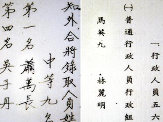 此次展出不僅有馬英九等人的榜單,還有1933年的超級(jí)古老榜單。這些榜單已有數(shù)十年歷史,在那個(gè)電腦不普及、甚至沒(méi)有電腦的年代,都是手寫(xiě),頗具古意。