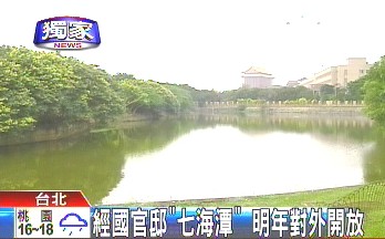 中新網(wǎng)3月18日電 據(jù)臺(tái)灣TVBS報(bào)道,臺(tái)北市府預(yù)計(jì)明年將蔣經(jīng)國(guó)居住過(guò)的七海官邸規(guī)劃為七海文化園區(qū)。七海官邸的七海潭現(xiàn)在已經(jīng)完成2公里的環(huán)湖步道,明年海軍移交給臺(tái)北市府之后,就會(huì)開(kāi)放民眾參觀。