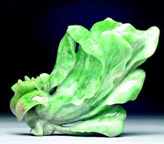 每年為故宮博物院吸引無數(shù)游客上門的“翠玉白菜”,其實(shí)并非獨(dú)一無二,光是臺北故宮就有三件“翠玉白菜”,但其中“翠玉小白菜”已有六、七年未展出,另一件“翠玉白菜花插”從未曝光過,由于故宮擬將現(xiàn)有依“編年”展覽的方式改為按“材質(zhì)”分類展出,在調(diào)整展覽之際,翠玉白菜將要搬新家。