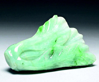 清代喜用各種材質(zhì)模擬真的植物種在花盆,翠玉白菜造形從清代中晚期開始流行,是吉祥題材。故宮明星展品“翠玉白菜”原置于“永和宮”,擺置在琺瑯盆中。“翠玉小白菜”原藏于“永壽宮”。中心開有一孔的“翠玉白菜花插”非常嬌小,被歸類在“珍玩庫”,不像另兩件列在“玉器科”,過去它從未曾公開展出過。