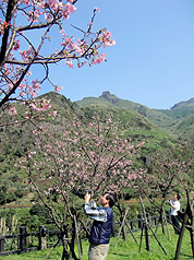 中新網(wǎng)2月24日電 據(jù)“中央社”報道,春天腳步到來,臺北縣黃金博物園區(qū)今天表示,區(qū)內(nèi)百花綻放,櫻花道中的櫻花已盛開,粉紅色的昭和櫻吸引游客的目光,歡迎民眾上山“走春”。