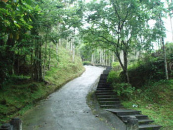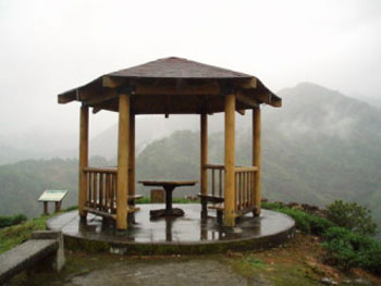 一路上爬,到達遠高處,山路又盤而向下,然后再上盤往另一高崗。抵達另一高處時,路旁設有一座雨量測量站,這里也是車道的終點,前方不遠處有一涼亭。由水柳腳形象商圈的牌樓至涼亭,約1.2公里,路程約25分鐘。