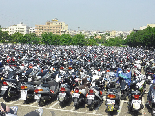 中新網(wǎng)5月18日電 臺灣靜宜大學(xué)有個號稱“全臺之最”的摩托車停車場,不僅常讓健忘學(xué)生在“車!敝姓也坏杰嚕⒚高^網(wǎng)絡(luò)在大陸傳開,被認(rèn)為是“世界奇景”,許多來臺參訪的大陸學(xué)者指名拍照留念,作為訪臺“見證”。