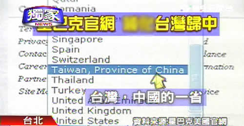 報道稱,上美國星巴克網(wǎng)站搜索在臺灣的分店,不管在高雄、新竹、嘉義還是臺北的分店,都加注了一排字“TAIWAN,PROVICE OF CHINA”(臺灣,中國的一省)。