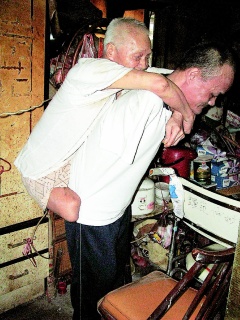 中新網6月15日電 據臺灣《聯(lián)合報》報道,苗栗市一對身體殘缺的父子相依為命,互為對方手腳;他們一個沒有雙手、一個沒有雙腳。