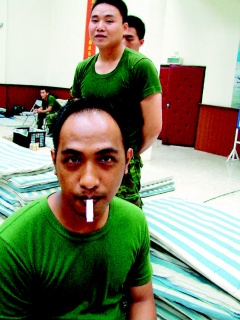 心輔官教導(dǎo)官兵,利用繃緊雙手、擠眉弄眼與用力聳肩等各種不同動作拉緊、放松肌肉,體會肌肉放松時的感覺,進而學(xué)會隨時放松自己,以免因太過緊張,造成失眠頭痛等各種不適。