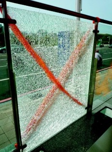 本月14日,美麗島站靠高雄郵局的出入口,有一片玻璃全片碎裂,警方和捷運(yùn)公司一度懷疑是天氣太熱才熱爆了,但工程人員進(jìn)一步檢視,在離地面4米的高度,發(fā)現(xiàn)玻璃上有疑似被撞擊點(diǎn)。