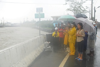 大水淹進(jìn)了丸山路住家,縣長(zhǎng)呂國(guó)華和鄉(xiāng)長(zhǎng)張秋明挨家挨戶(hù)敲門(mén)勸住戶(hù)撤離。軍方出動(dòng)一百五十多名人力,協(xié)助堆砂包,清淤塞。