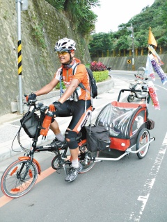 戴正東的“小拖車”其實是單車外掛的嬰兒車,他原本用來載體重26公斤混種獅毛犬出游,為了自行車環(huán)島,就用小拖車放置睡袋、帳篷、換洗衣物、小型充電器等裝置,重量達30公斤。