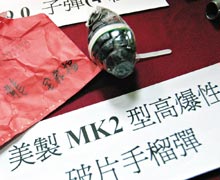 落網(wǎng)的30歲嫌犯李坤龍供稱,這批軍火是他向別人買二手車時(shí),原車主留下來的,對于李嫌的說詞,警方不但不采信,并向其訓(xùn)誡說,“買車附贈(zèng)手榴彈!你當(dāng)我三歲小孩啊!”